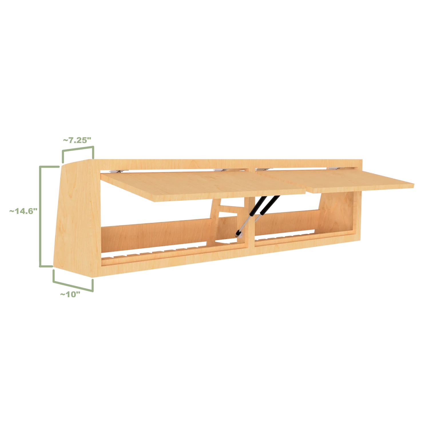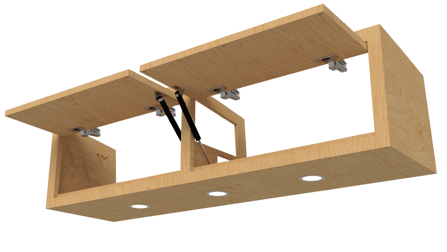 • A false bottom cabinet floor is included to hide all wiring for lights, switches, or chargers