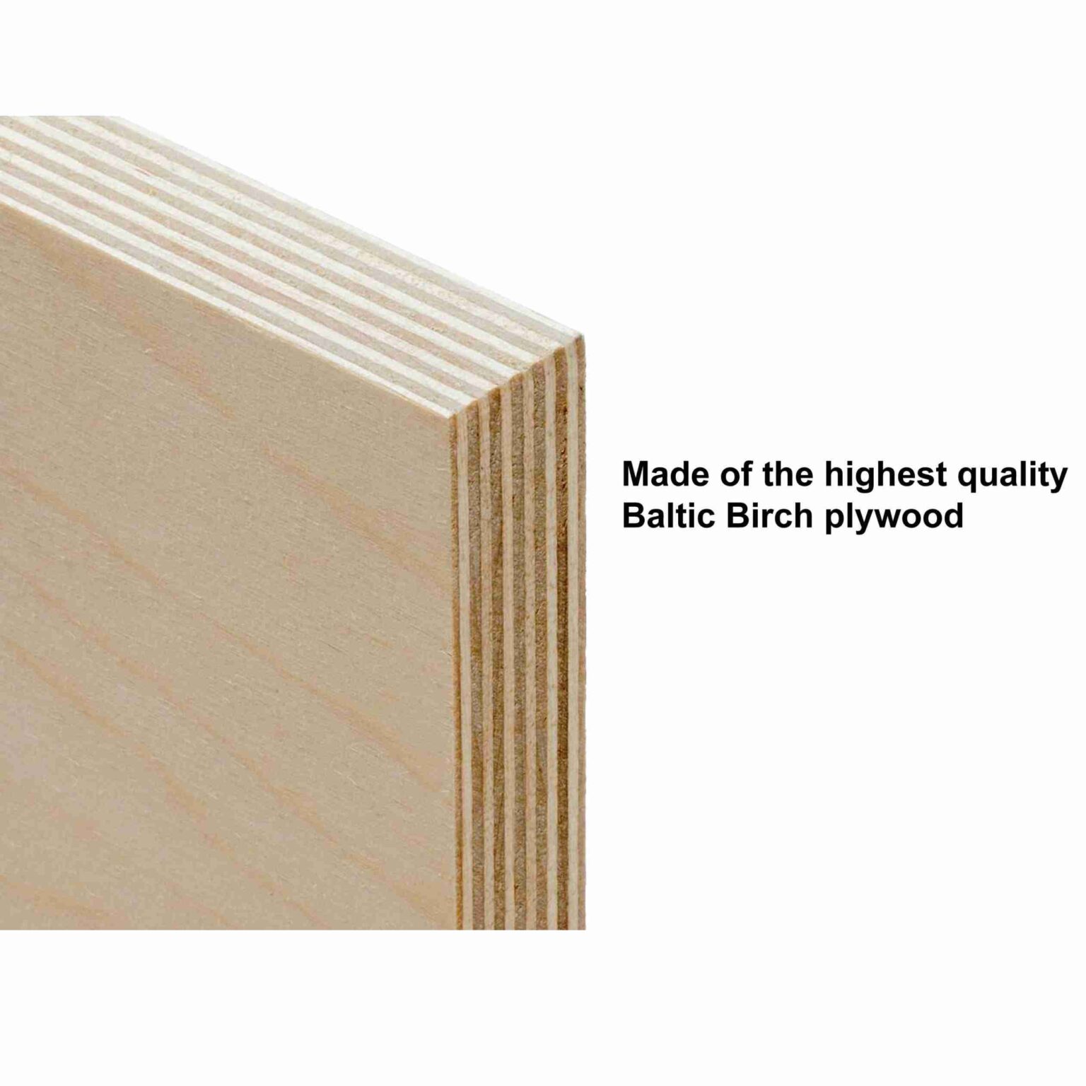 - 13 Packed flat cabinet panels made of ½ inch and ¾ inch Baltic Birch Plywood